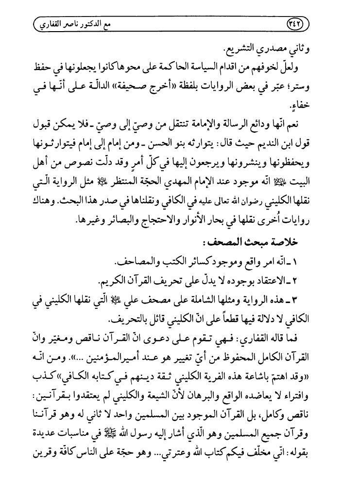 مع الدكتور ناصر القفاري في أصول مذهبه، حول القرآن الكريم والتشيع