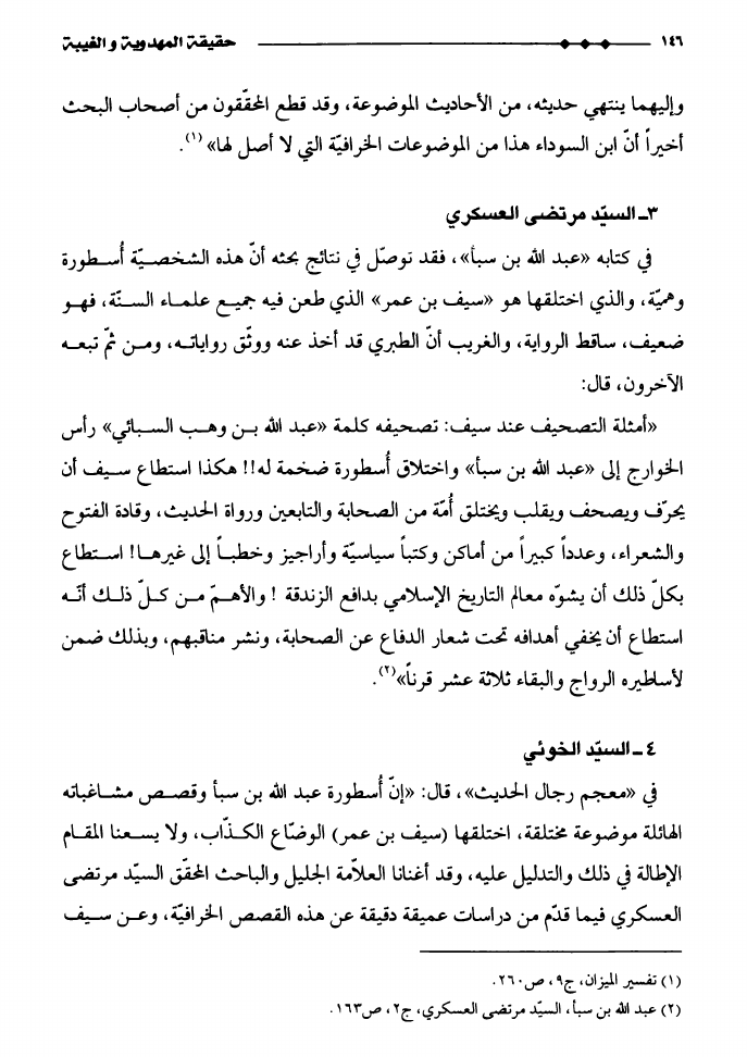 نام کتاب : حقيقة المهدوية و الغيبة، دراسة تأصيليّة نقديّة لشبهات الدكتور ناصر بن عبدالله القفاري في كتابه أصول مذهب الشيعة نویسنده : الدكتور يحيى عبد الحسن الدوخي جلد : 1 صفحه : 146