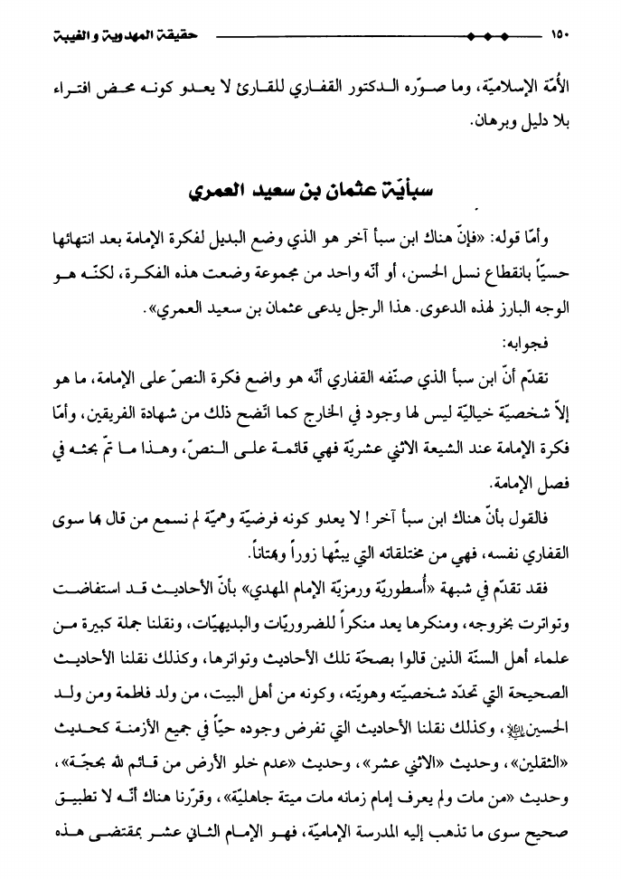 نام کتاب : حقيقة المهدوية و الغيبة، دراسة تأصيليّة نقديّة لشبهات الدكتور ناصر بن عبدالله القفاري في كتابه أصول مذهب الشيعة نویسنده : الدكتور يحيى عبد الحسن الدوخي جلد : 1 صفحه : 150