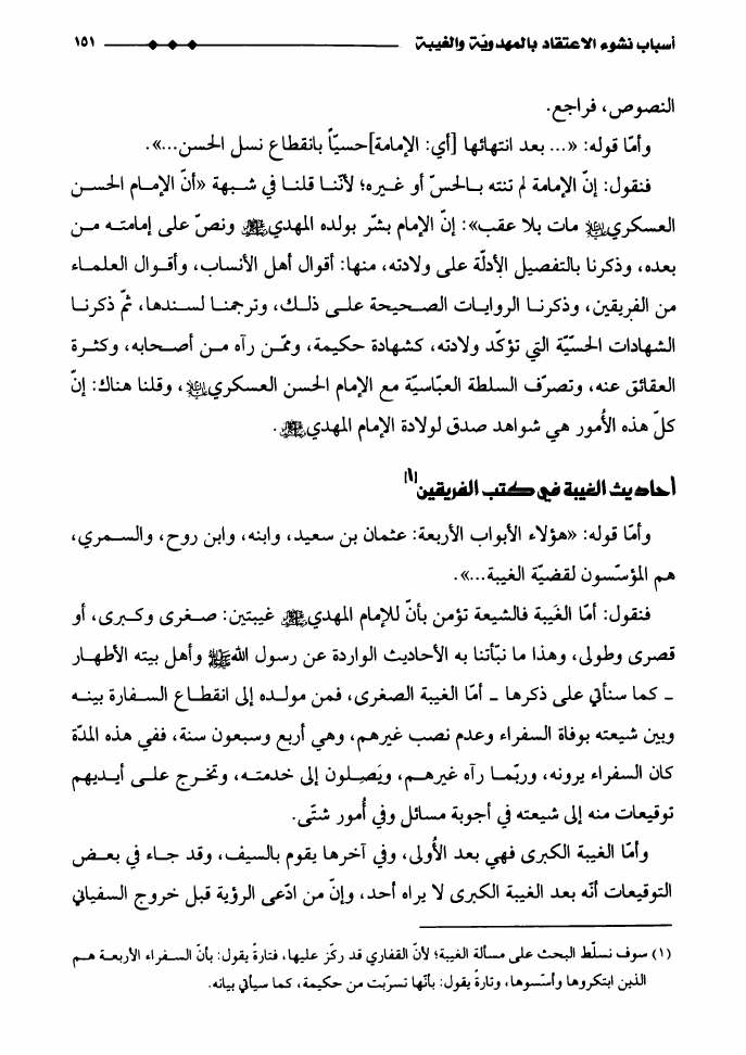 نام کتاب : حقيقة المهدوية و الغيبة، دراسة تأصيليّة نقديّة لشبهات الدكتور ناصر بن عبدالله القفاري في كتابه أصول مذهب الشيعة نویسنده : الدكتور يحيى عبد الحسن الدوخي جلد : 1 صفحه : 151