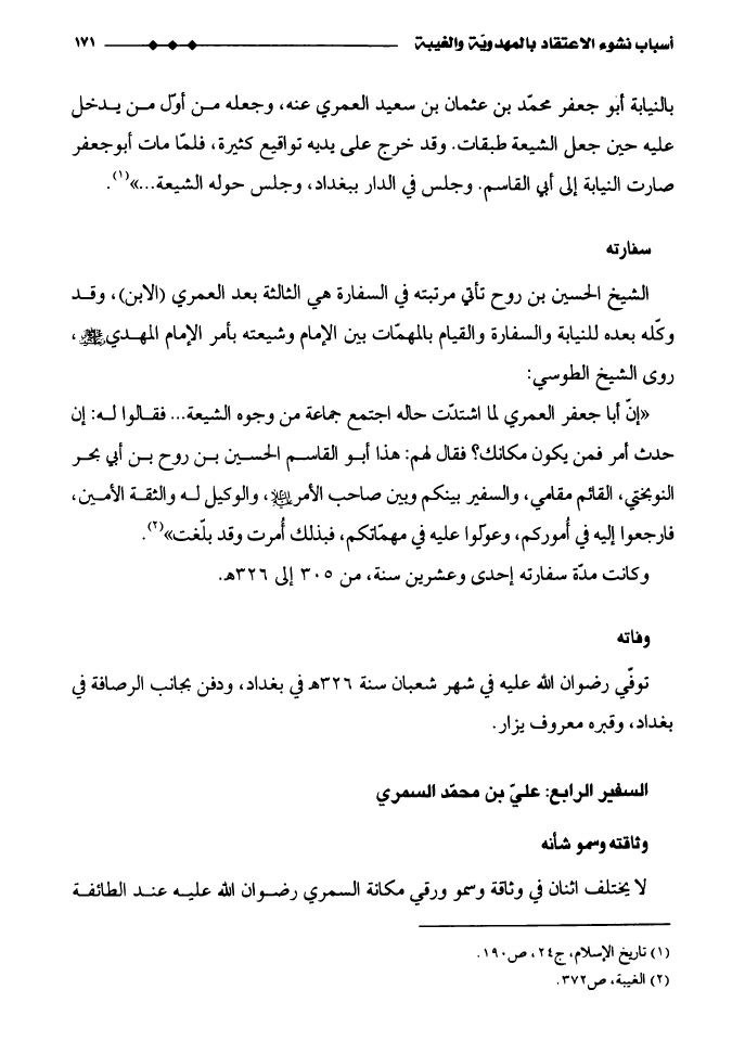 نام کتاب : حقيقة المهدوية و الغيبة، دراسة تأصيليّة نقديّة لشبهات الدكتور ناصر بن عبدالله القفاري في كتابه أصول مذهب الشيعة نویسنده : الدكتور يحيى عبد الحسن الدوخي جلد : 1 صفحه : 171