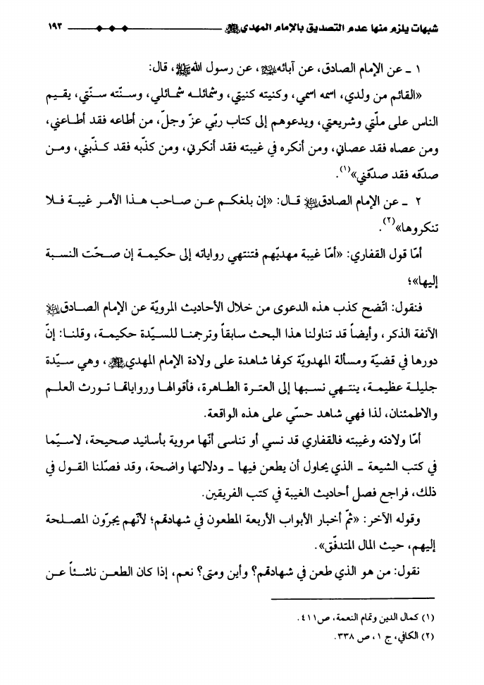 نام کتاب : حقيقة المهدوية و الغيبة، دراسة تأصيليّة نقديّة لشبهات الدكتور ناصر بن عبدالله القفاري في كتابه أصول مذهب الشيعة نویسنده : الدكتور يحيى عبد الحسن الدوخي جلد : 1 صفحه : 193