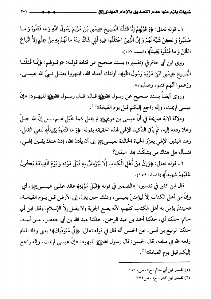 نام کتاب : حقيقة المهدوية و الغيبة، دراسة تأصيليّة نقديّة لشبهات الدكتور ناصر بن عبدالله القفاري في كتابه أصول مذهب الشيعة نویسنده : الدكتور يحيى عبد الحسن الدوخي جلد : 1 صفحه : 201