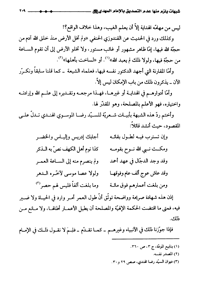 نام کتاب : حقيقة المهدوية و الغيبة، دراسة تأصيليّة نقديّة لشبهات الدكتور ناصر بن عبدالله القفاري في كتابه أصول مذهب الشيعة نویسنده : الدكتور يحيى عبد الحسن الدوخي جلد : 1 صفحه : 209