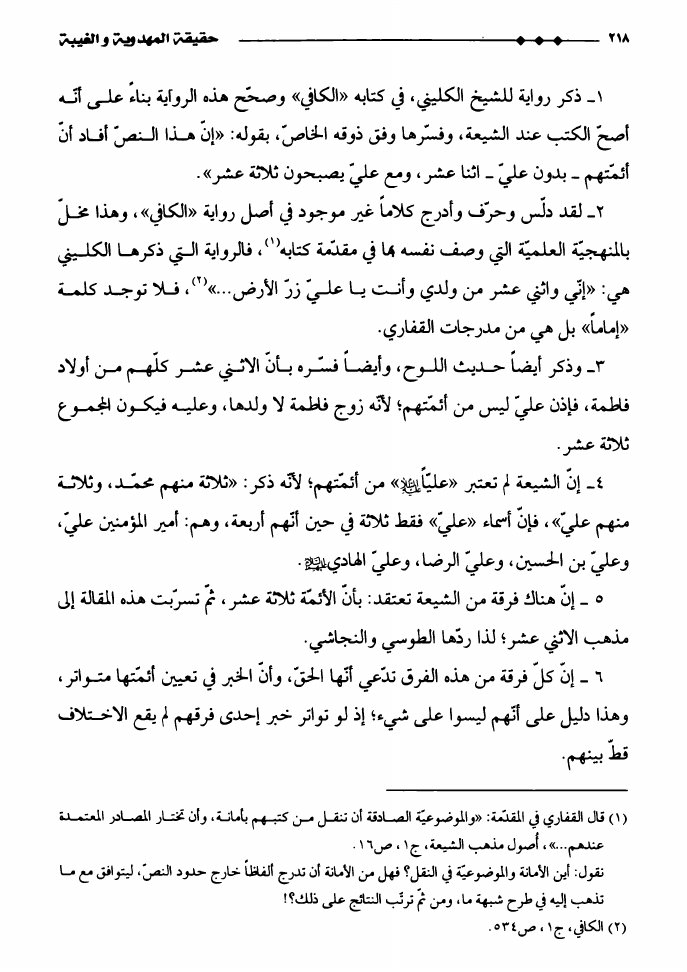 نام کتاب : حقيقة المهدوية و الغيبة، دراسة تأصيليّة نقديّة لشبهات الدكتور ناصر بن عبدالله القفاري في كتابه أصول مذهب الشيعة نویسنده : الدكتور يحيى عبد الحسن الدوخي جلد : 1 صفحه : 218