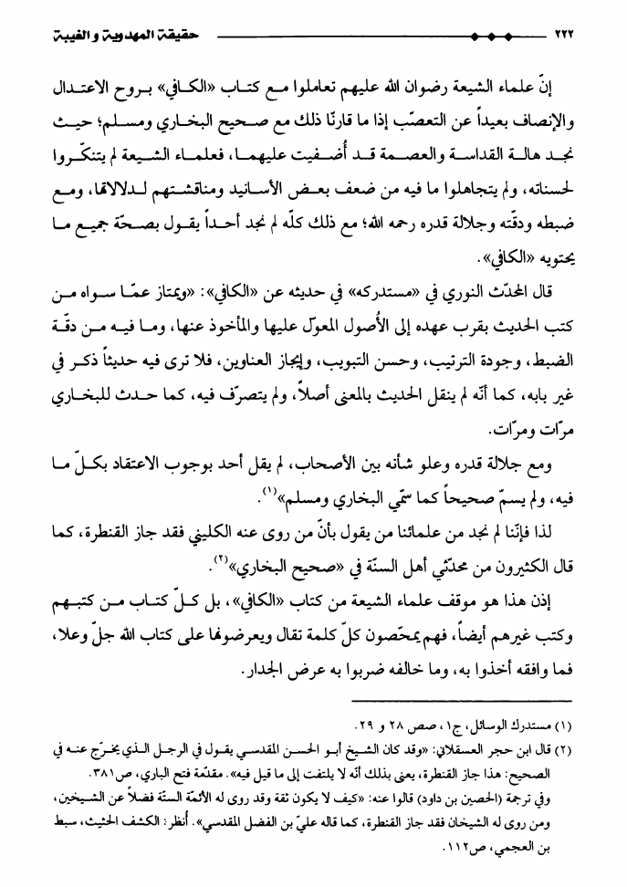 نام کتاب : حقيقة المهدوية و الغيبة، دراسة تأصيليّة نقديّة لشبهات الدكتور ناصر بن عبدالله القفاري في كتابه أصول مذهب الشيعة نویسنده : الدكتور يحيى عبد الحسن الدوخي جلد : 1 صفحه : 222
