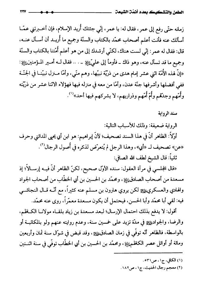 نام کتاب : حقيقة المهدوية و الغيبة، دراسة تأصيليّة نقديّة لشبهات الدكتور ناصر بن عبدالله القفاري في كتابه أصول مذهب الشيعة نویسنده : الدكتور يحيى عبد الحسن الدوخي جلد : 1 صفحه : 227