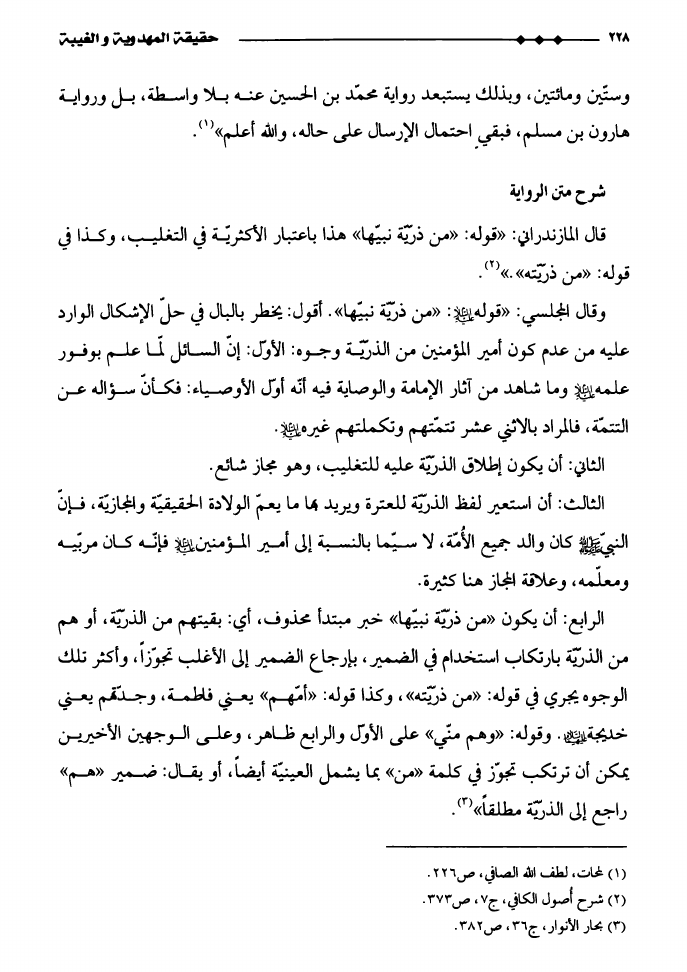 نام کتاب : حقيقة المهدوية و الغيبة، دراسة تأصيليّة نقديّة لشبهات الدكتور ناصر بن عبدالله القفاري في كتابه أصول مذهب الشيعة نویسنده : الدكتور يحيى عبد الحسن الدوخي جلد : 1 صفحه : 228