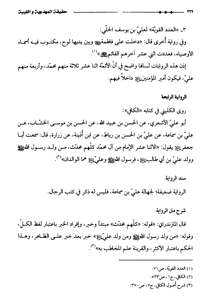 نام کتاب : حقيقة المهدوية و الغيبة، دراسة تأصيليّة نقديّة لشبهات الدكتور ناصر بن عبدالله القفاري في كتابه أصول مذهب الشيعة نویسنده : الدكتور يحيى عبد الحسن الدوخي جلد : 1 صفحه : 232