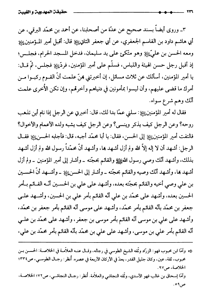 نام کتاب : حقيقة المهدوية و الغيبة، دراسة تأصيليّة نقديّة لشبهات الدكتور ناصر بن عبدالله القفاري في كتابه أصول مذهب الشيعة نویسنده : الدكتور يحيى عبد الحسن الدوخي جلد : 1 صفحه : 236