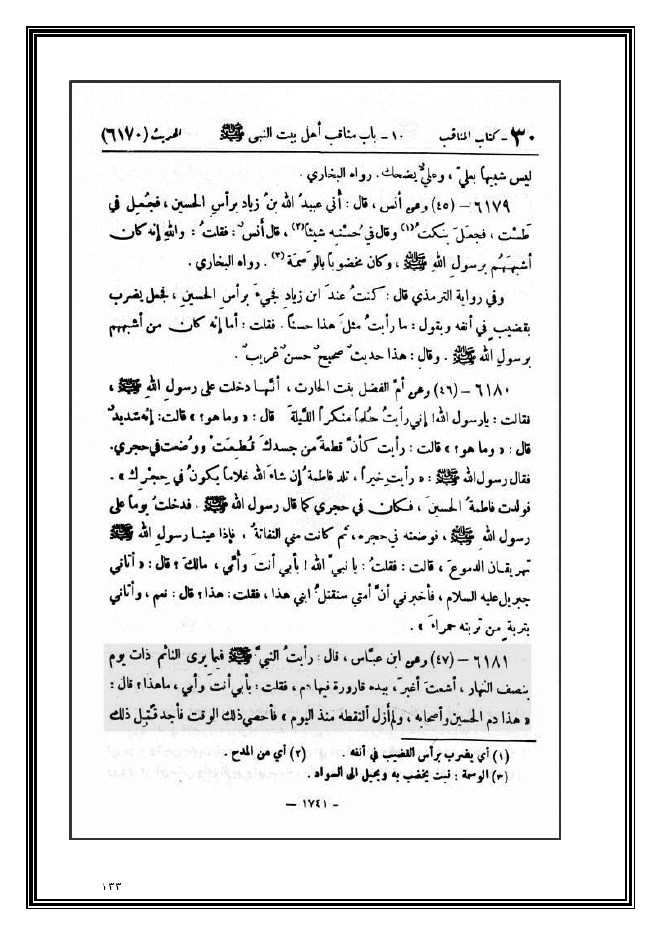 بكاء النبي ص، على الإمام الحسين وذكر مقتله