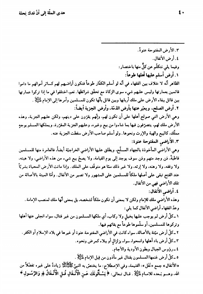 هدي الملة، إلى أن فدك نحلة