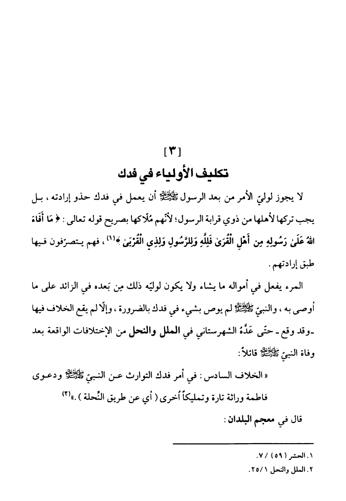 هدي الملة، إلى أن فدك نحلة
