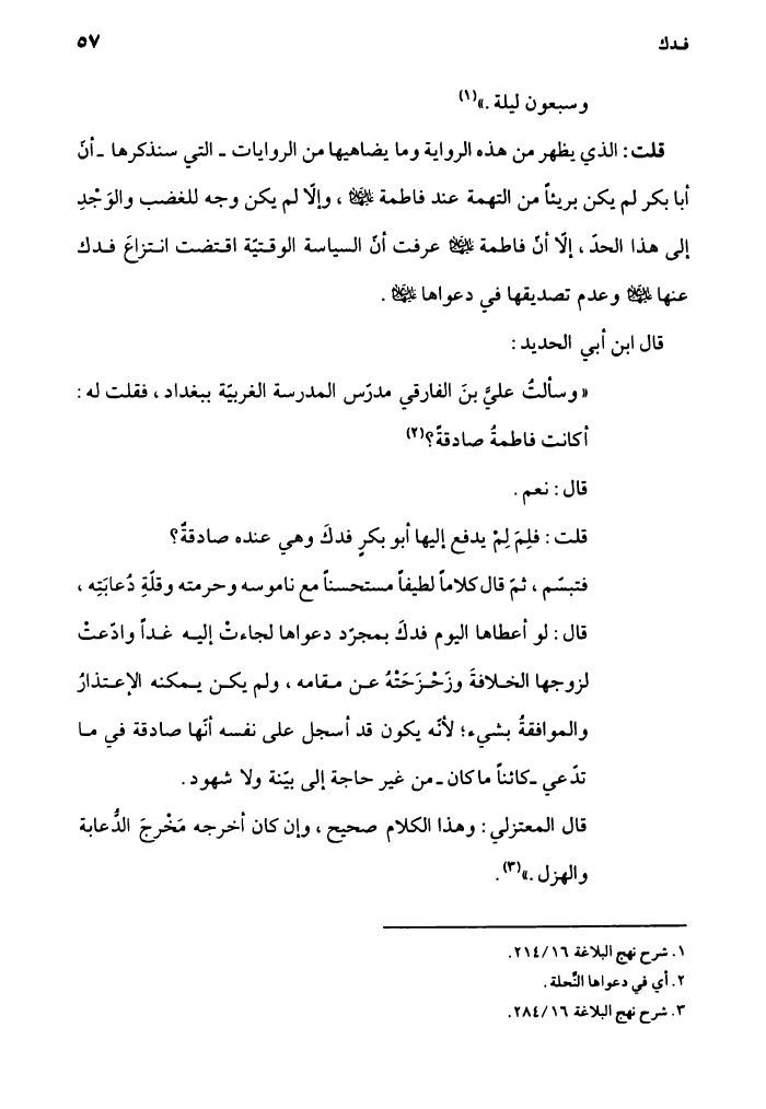 هدي الملة، إلى أن فدك نحلة