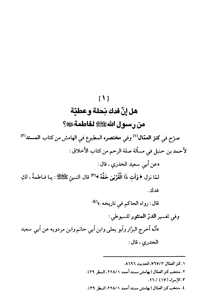 هدي الملة، إلى أن فدك نحلة
