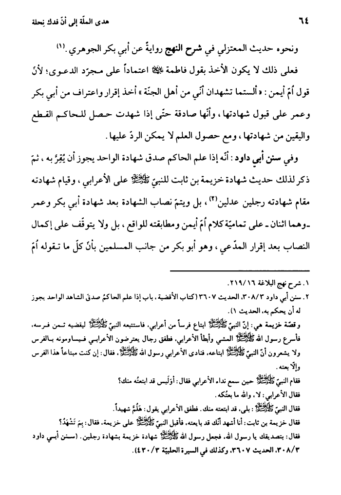 هدي الملة، إلى أن فدك نحلة