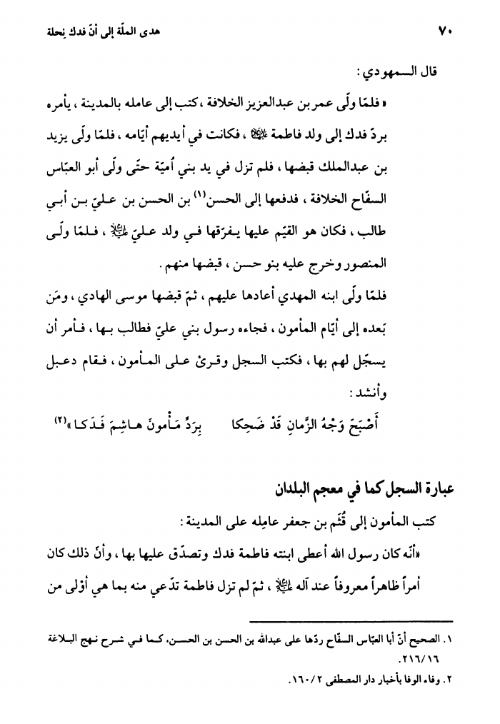 هدي الملة، إلى أن فدك نحلة