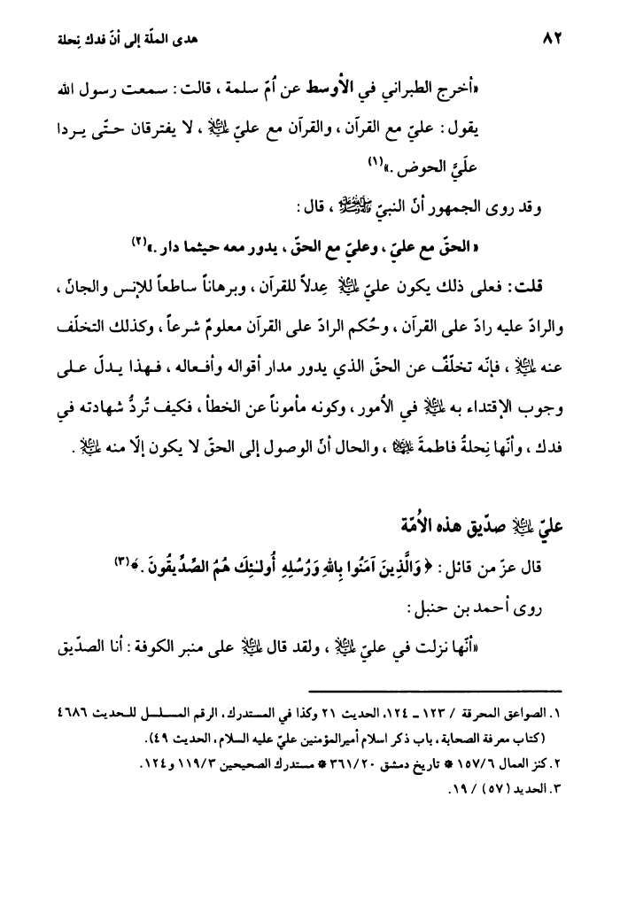 هدي الملة، إلى أن فدك نحلة