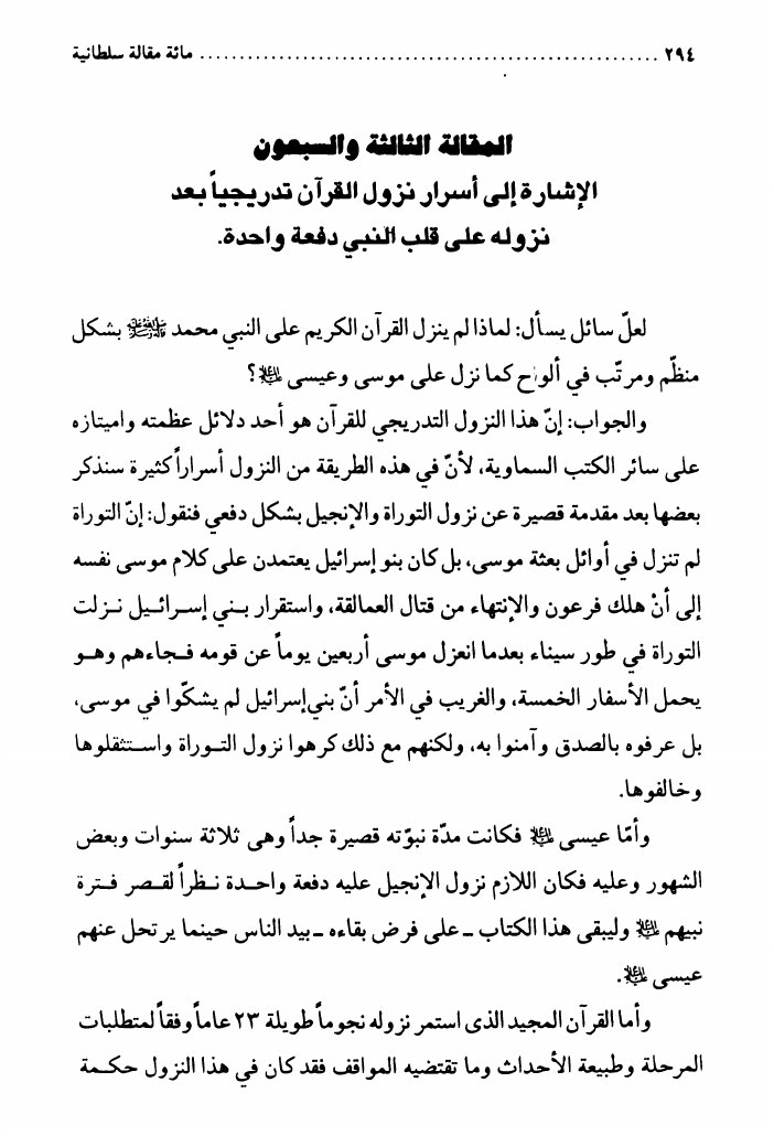 مائة مقالة سلطانية، حول الإنجيل والتوراة والقرآن الكريم