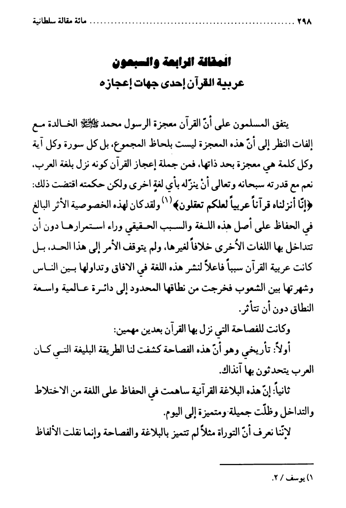 مائة مقالة سلطانية، حول الإنجيل والتوراة والقرآن الكريم