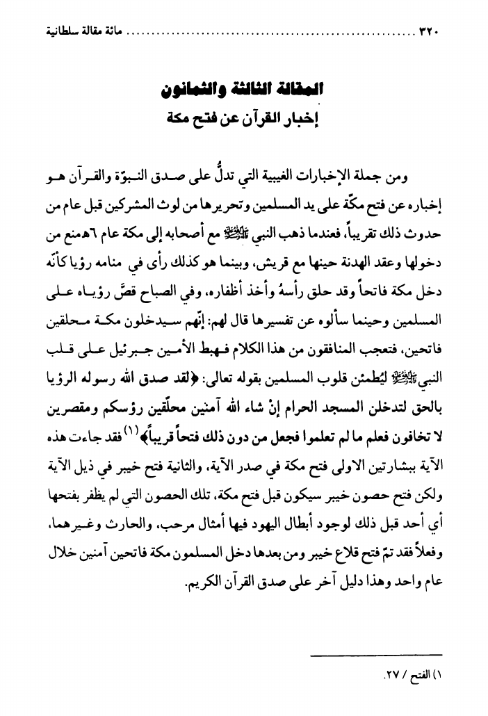 مائة مقالة سلطانية، حول الإنجيل والتوراة والقرآن الكريم
