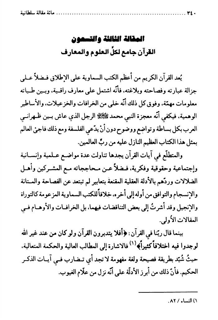 مائة مقالة سلطانية، حول الإنجيل والتوراة والقرآن الكريم