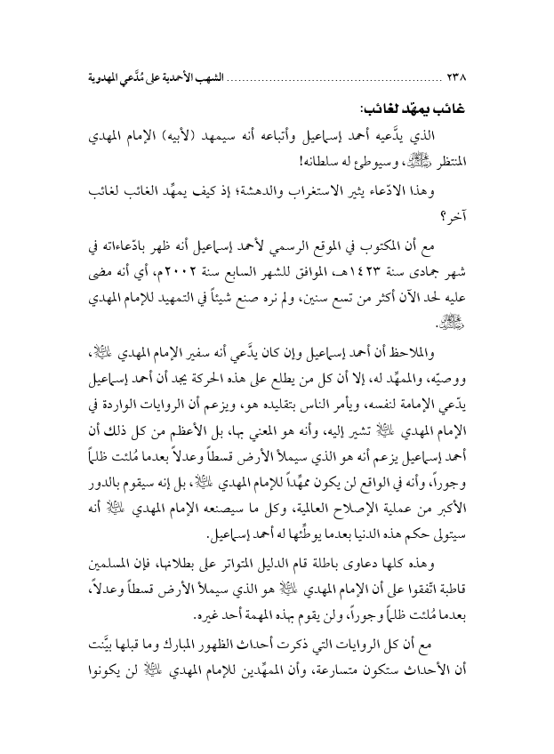 الشهب الأحمديّة على مُدّعي المهدويّة