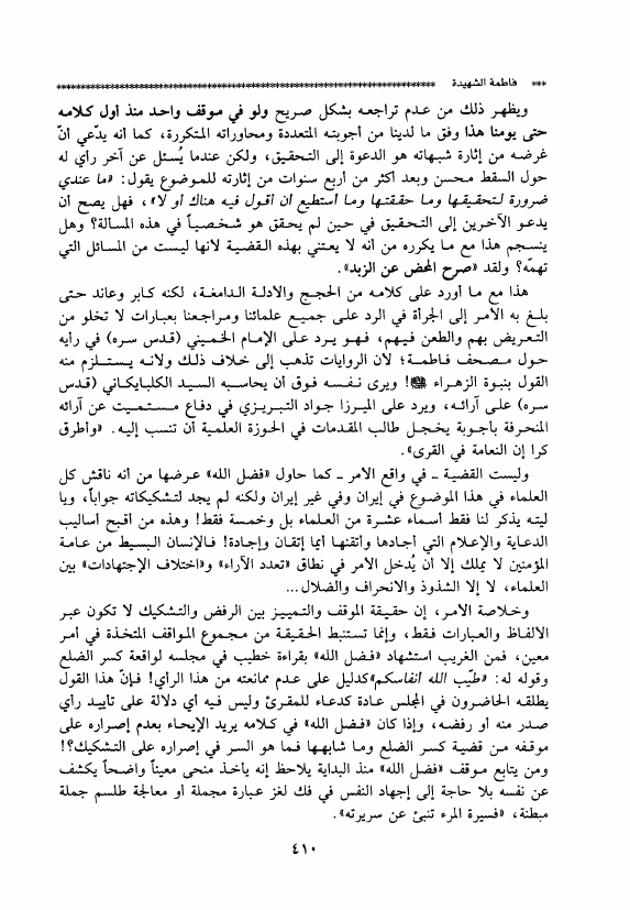 حوار مع فضل الله حول الزهراء ع