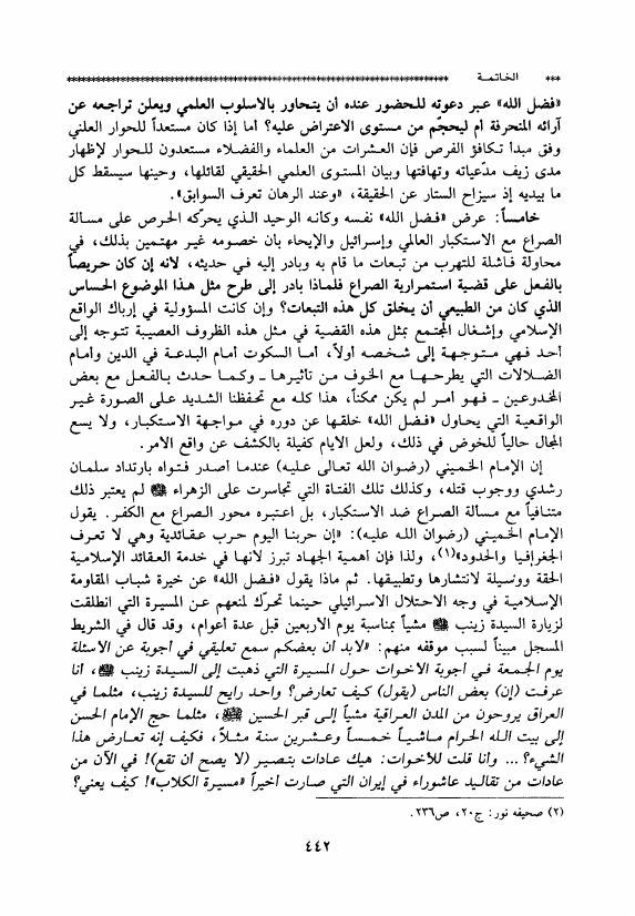 حوار مع فضل الله حول الزهراء ع