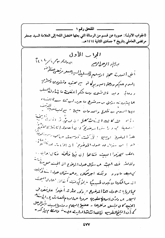 حوار مع فضل الله حول الزهراء ع