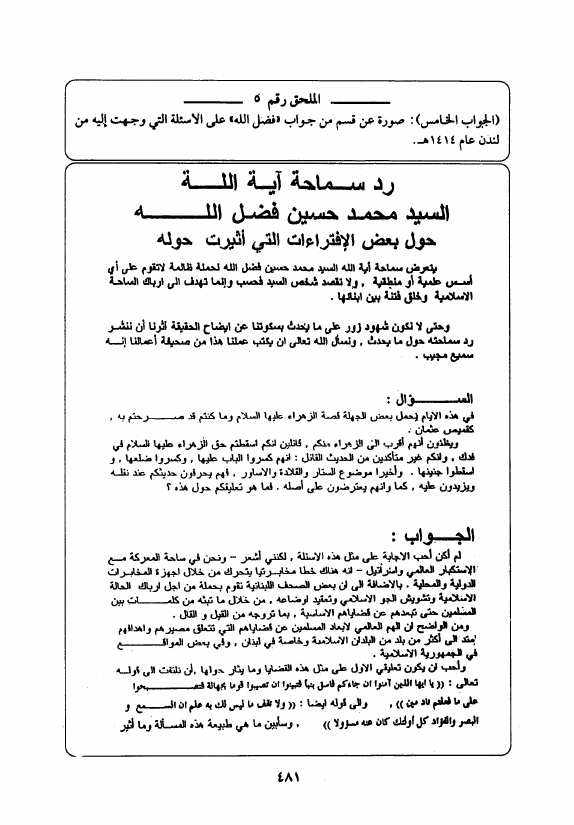 حوار مع فضل الله حول الزهراء ع