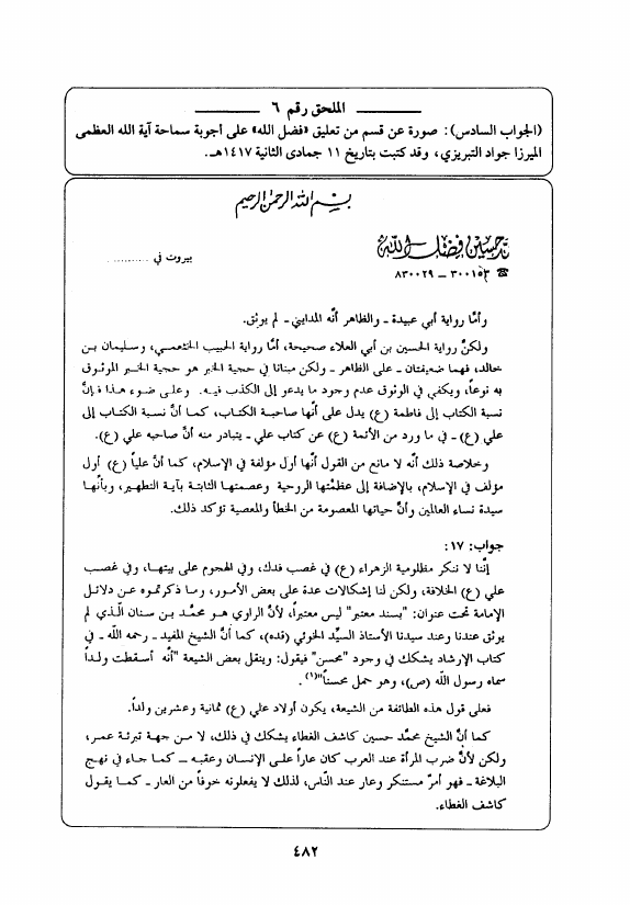 حوار مع فضل الله حول الزهراء ع