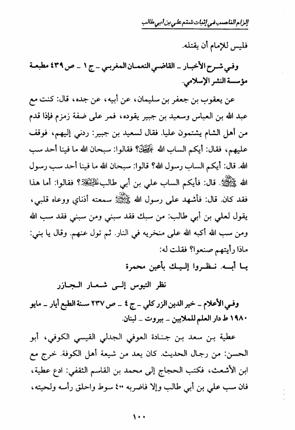 إلزام الناصب في إثبات شتم علي بن أبي طالب ع