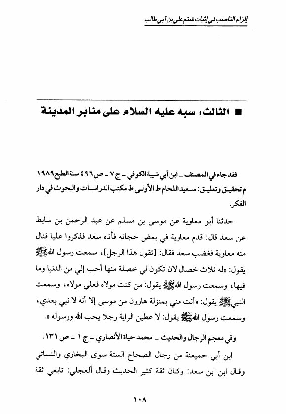 إلزام الناصب في إثبات شتم علي بن أبي طالب ع