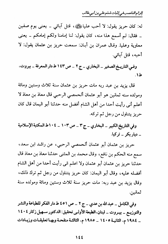 إلزام الناصب في إثبات شتم علي بن أبي طالب ع