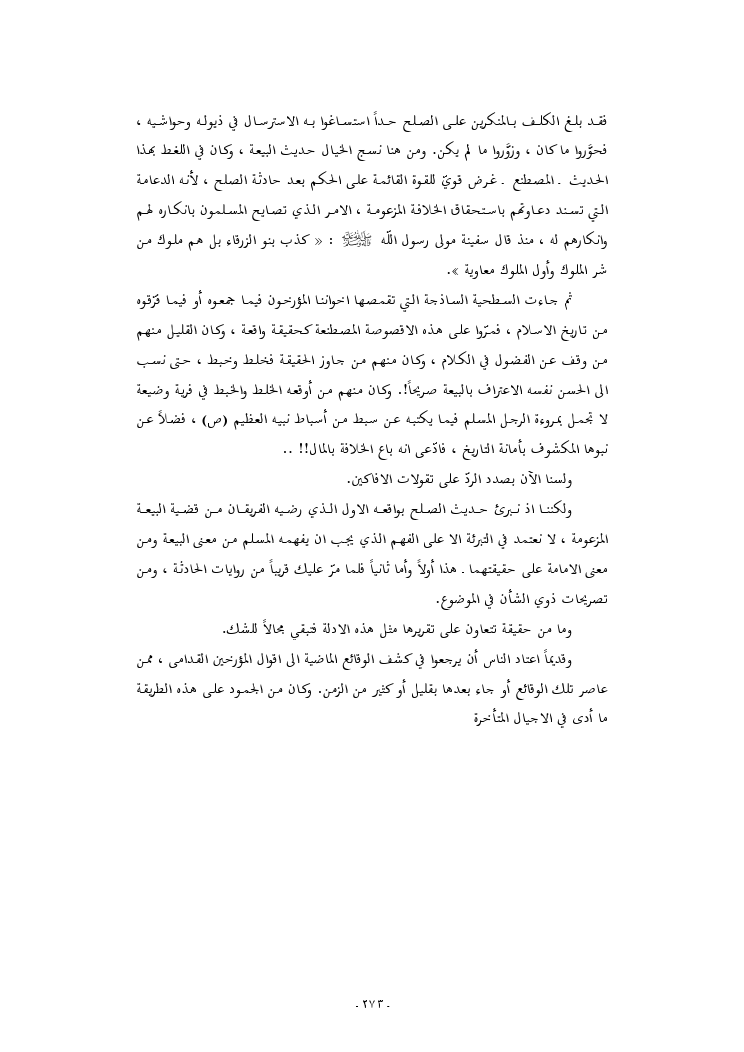 صلح الحسن عليه السلام - الشيخ راضي آل ياسين
