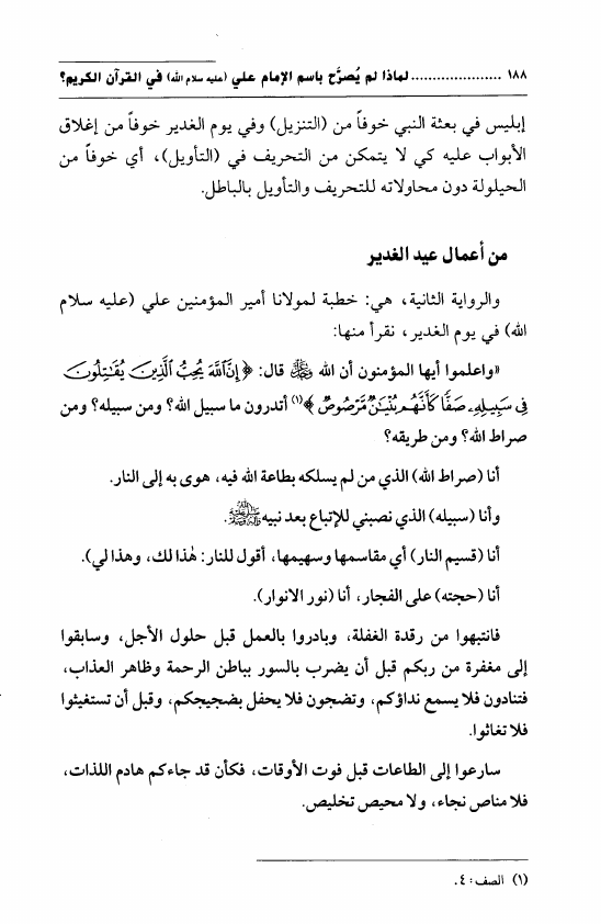 لماذا لم يُصرّح باسم الإمام علي في القرآن الكريم ؟
