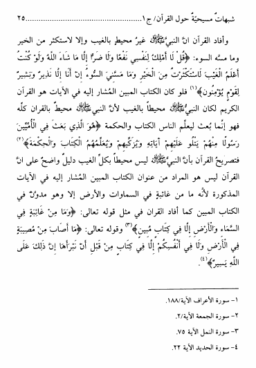 نام کتاب : شبهات مسيحية حول القرآن الكريم، يتصدى للرد على عدد من دعاوى التناقض بين آيات من القرآن المجيد - ج1 ج2 نویسنده : الشيخ محمد صنقور علي البحراني جلد : 1 صفحه : 25
