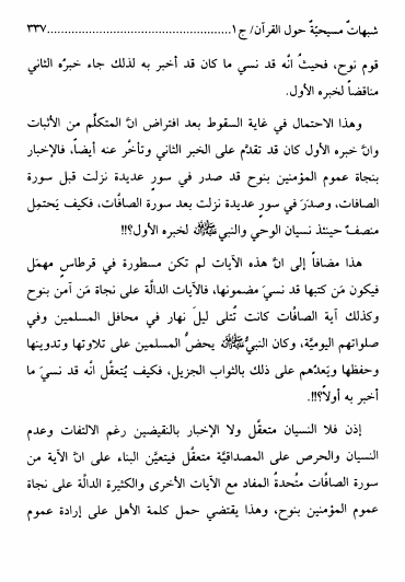 نام کتاب : شبهات مسيحية حول القرآن الكريم، يتصدى للرد على عدد من دعاوى التناقض بين آيات من القرآن المجيد - ج1 ج2 نویسنده : الشيخ محمد صنقور علي البحراني جلد : 1 صفحه : 337