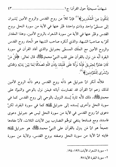 نام کتاب : شبهات مسيحية حول القرآن الكريم، يتصدى للرد على عدد من دعاوى التناقض بين آيات من القرآن المجيد - ج1 ج2 نویسنده : الشيخ محمد صنقور علي البحراني جلد : 1 صفحه : 43