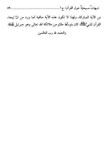 نام کتاب : شبهات مسيحية حول القرآن الكريم، يتصدى للرد على عدد من دعاوى التناقض بين آيات من القرآن المجيد - ج1 ج2 نویسنده : الشيخ محمد صنقور علي البحراني جلد : 1 صفحه : 59