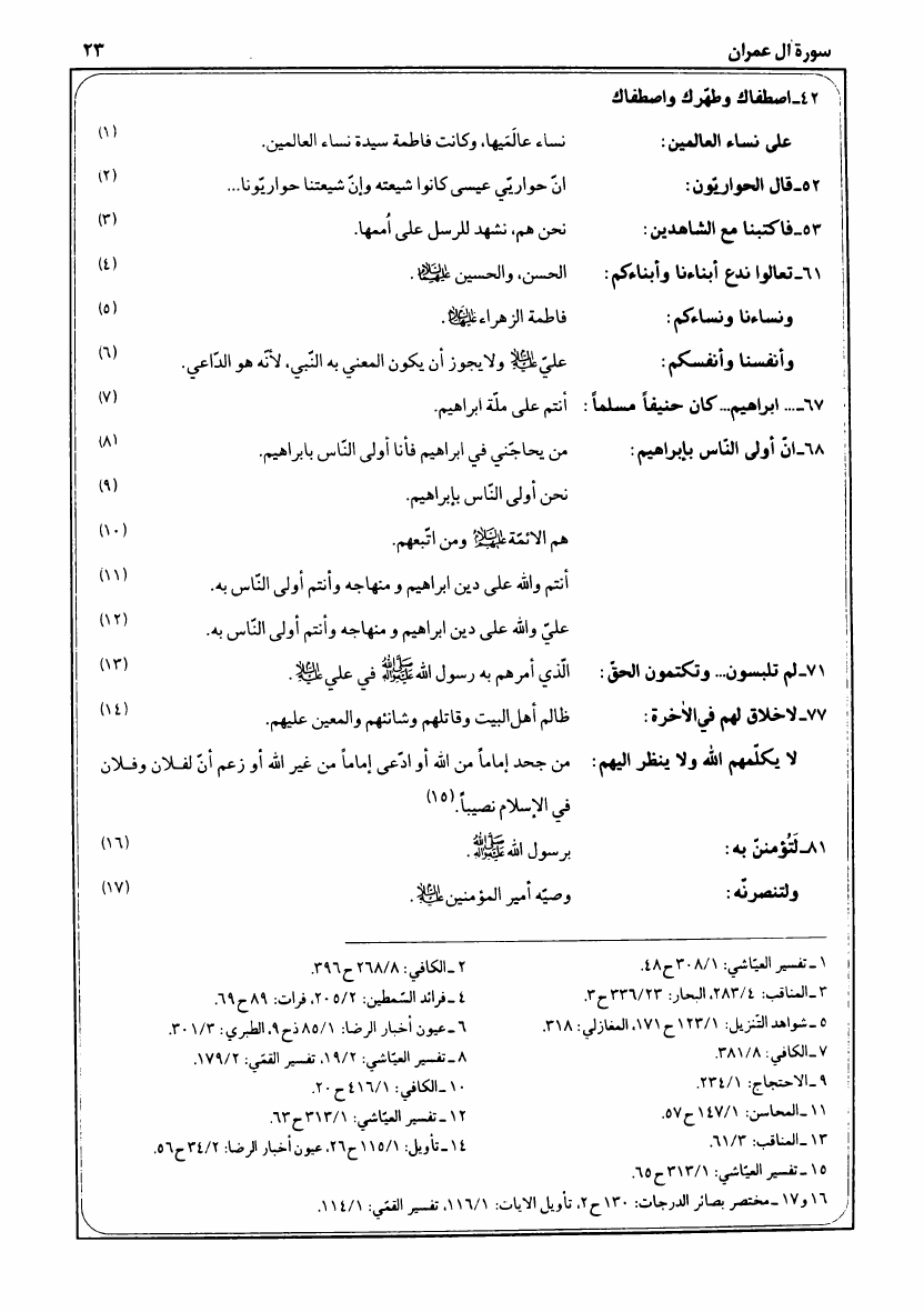 نام کتاب : زبدة تأويل الآيات النازلة في فضائل العترة الطاهرة ع، بديعة مأثورة من كتب التفسير والرواية نویسنده : السيد محمد باقر موحد الأبطحي جلد : 1 صفحه : 23