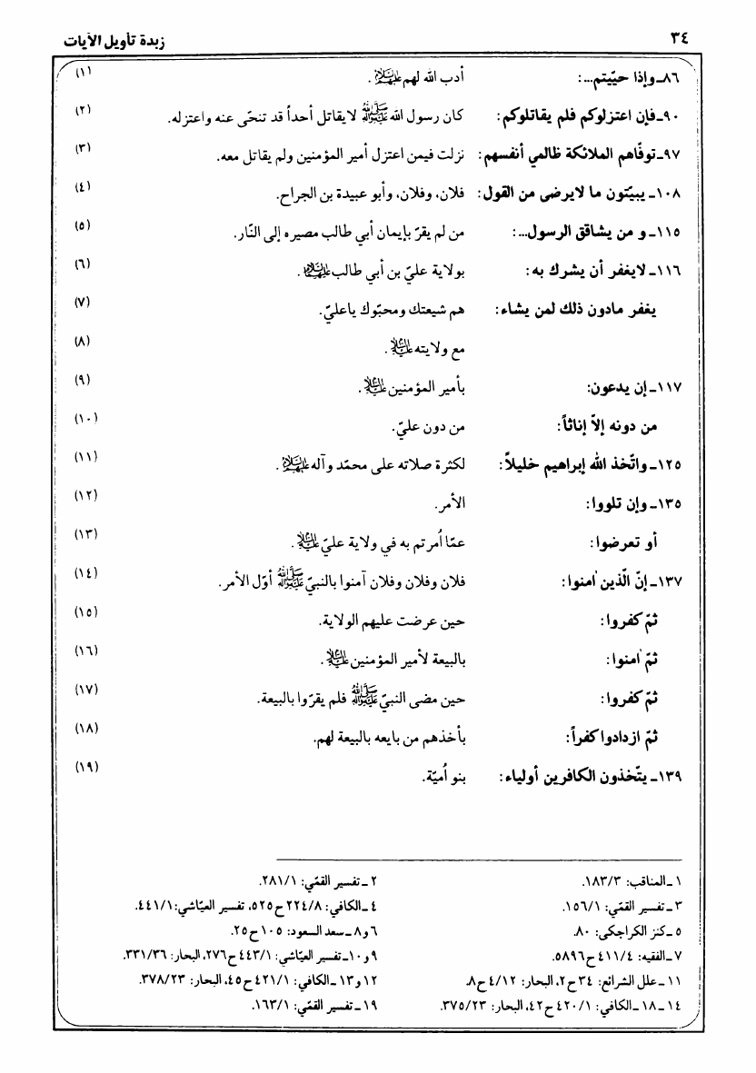 نام کتاب : زبدة تأويل الآيات النازلة في فضائل العترة الطاهرة ع، بديعة مأثورة من كتب التفسير والرواية نویسنده : السيد محمد باقر موحد الأبطحي جلد : 1 صفحه : 34