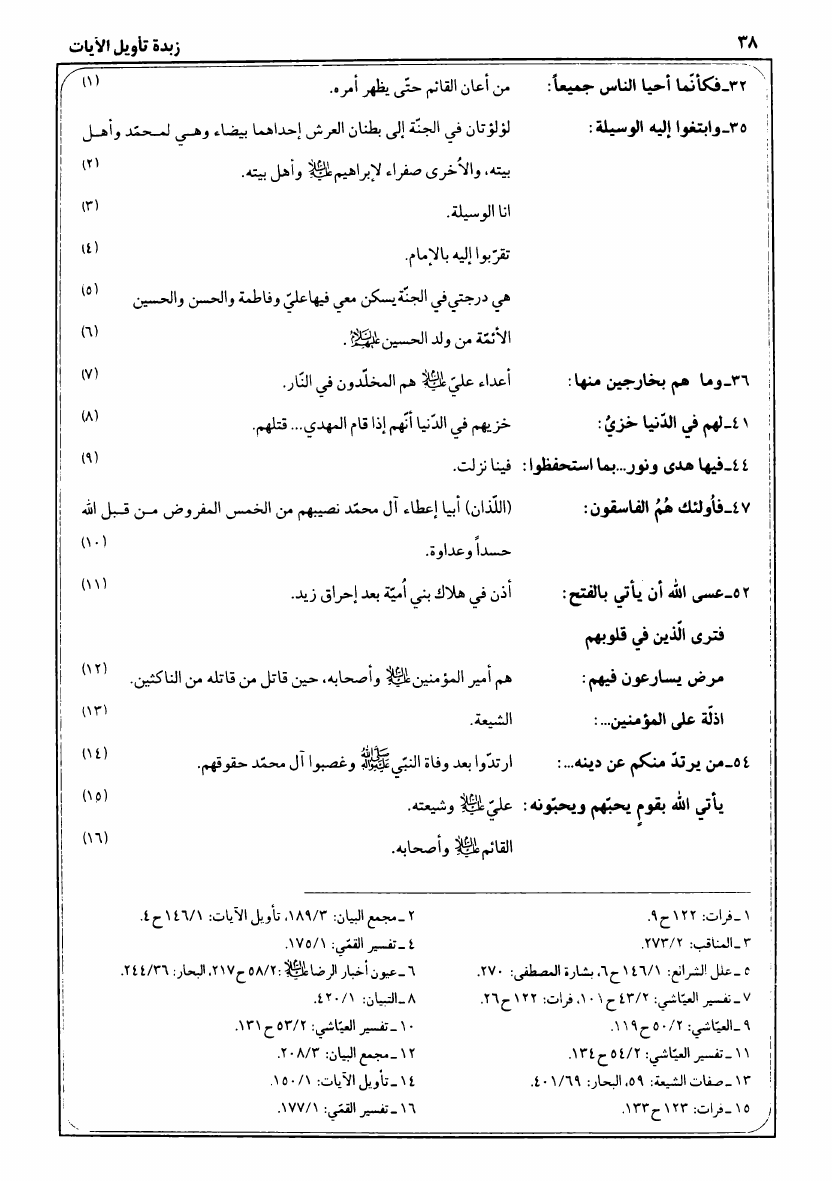 نام کتاب : زبدة تأويل الآيات النازلة في فضائل العترة الطاهرة ع، بديعة مأثورة من كتب التفسير والرواية نویسنده : السيد محمد باقر موحد الأبطحي جلد : 1 صفحه : 38