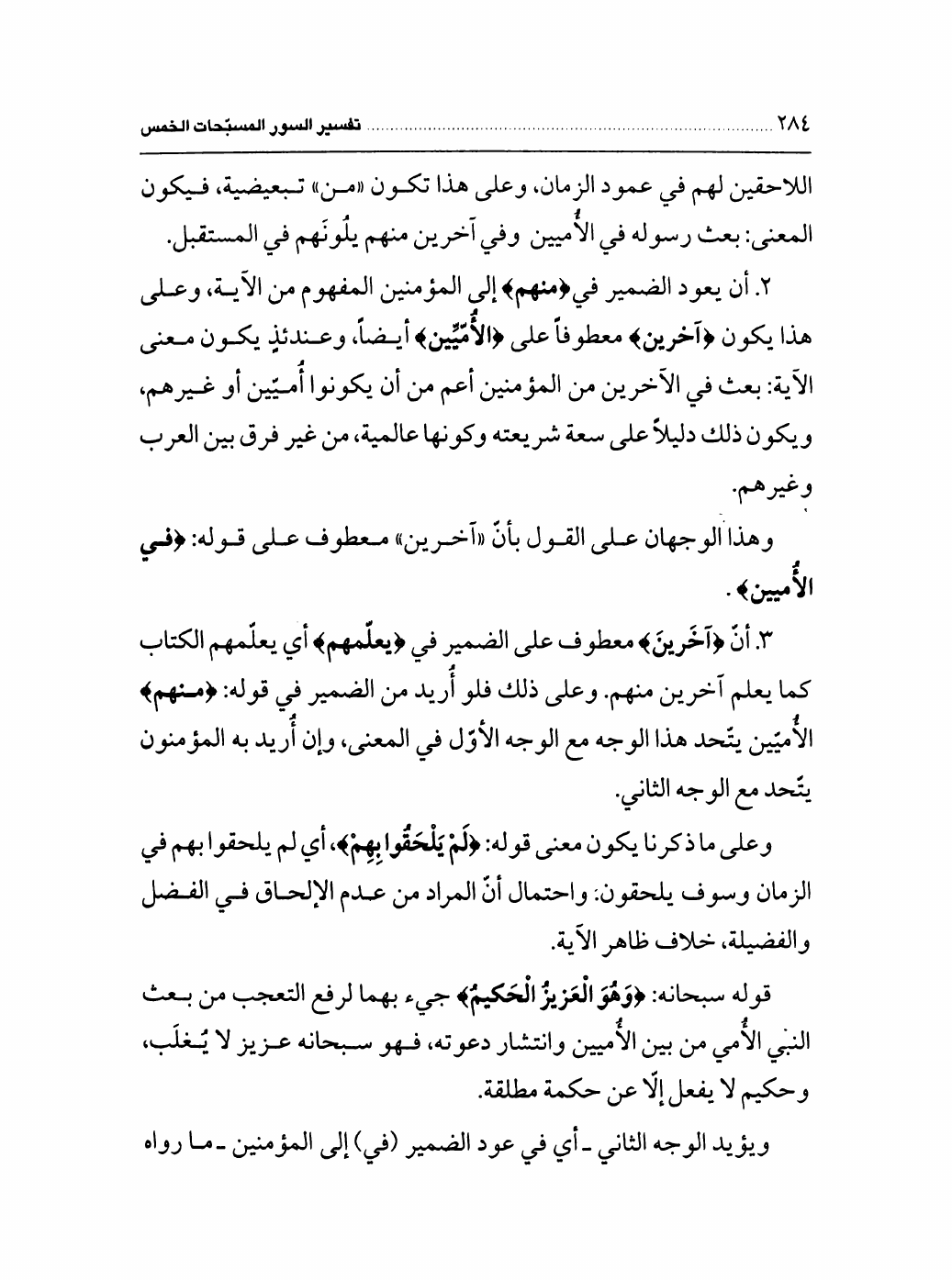 تفسير السور المسبحات الخمس