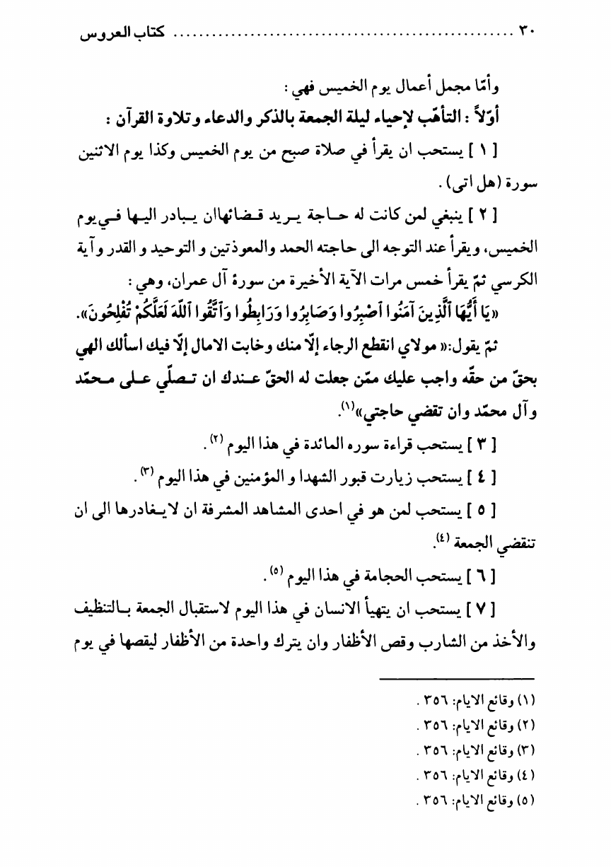 العروس في فضائل الجمعة والاعمال المستحبة فيه