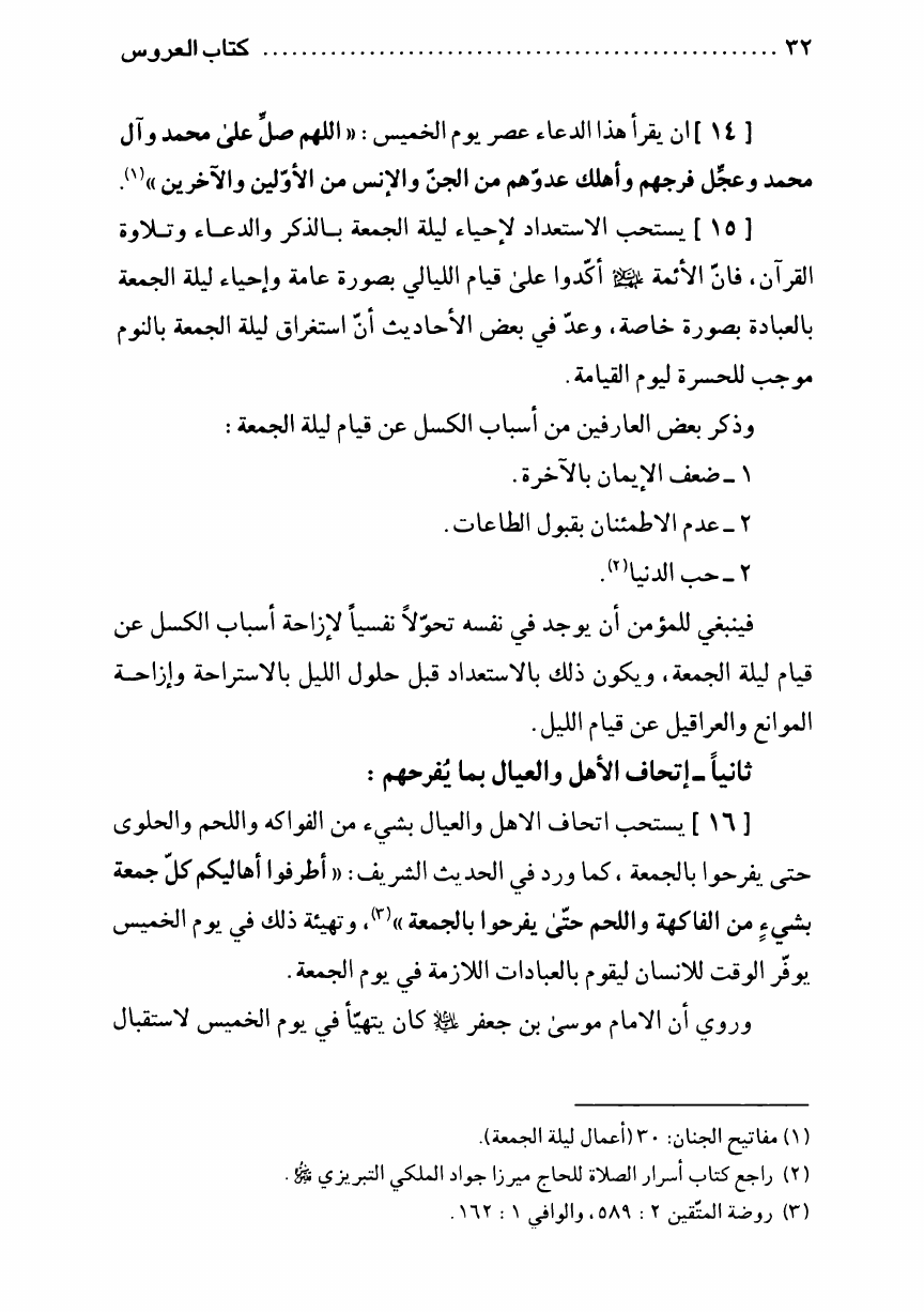 العروس في فضائل الجمعة والاعمال المستحبة فيه