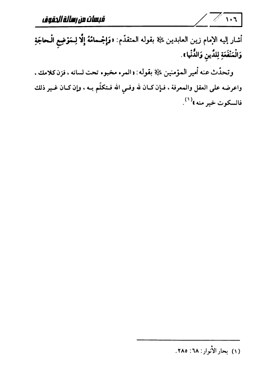 قبسات من رسالة الحقوق، شرح مضموني تحليلي لبعض مفردات رسالة الحقوق المباركة