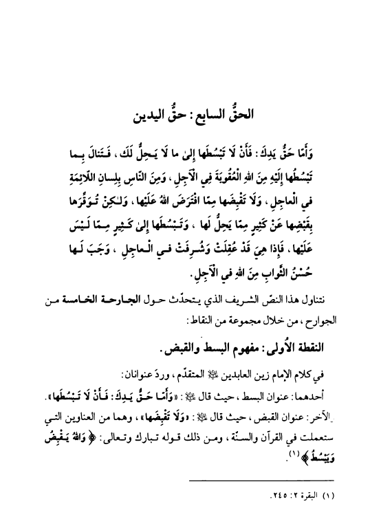 قبسات من رسالة الحقوق، شرح مضموني تحليلي لبعض مفردات رسالة الحقوق المباركة