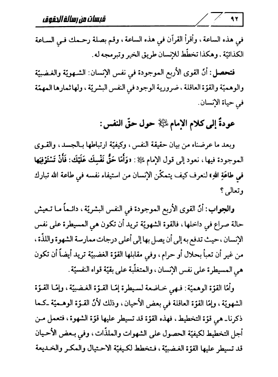 قبسات من رسالة الحقوق، شرح مضموني تحليلي لبعض مفردات رسالة الحقوق المباركة
